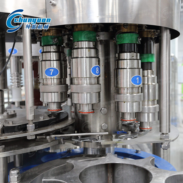 純源機械廠家生產(chǎn)制造的全自動純凈水灌裝設(shè)備適合350-1500ml的PET瓶裝水的灌裝生產(chǎn),根據(jù)物料水位高度主動控制,過程全自動生產(chǎn)完成。全自動純凈水灌裝設(shè)備采用卡瓶頸傳動技術(shù),實現(xiàn)全自動沖瓶、灌裝、旋蓋等工序,自動化程度高。