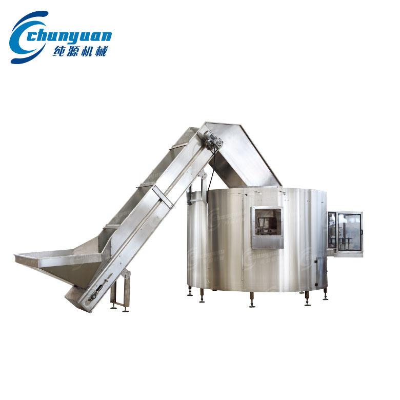 純?cè)礄C(jī)械廠家專業(yè)供應(yīng)的全自動(dòng)理瓶機(jī)可用于無(wú)序聚酯瓶的整理,將散亂無(wú)章的瓶子經(jīng)由提升機(jī)送進(jìn)理瓶機(jī)存瓶圈內(nèi),靠轉(zhuǎn)盤(pán)的推力,瓶進(jìn)入瓶格內(nèi)自行定位。瓶子通過(guò)理瓶機(jī)翻轉(zhuǎn)裝置和氣流的作用,瓶被整理成瓶口向上直立,并經(jīng)風(fēng)送式輸瓶系統(tǒng)輸出進(jìn)入下道工序。