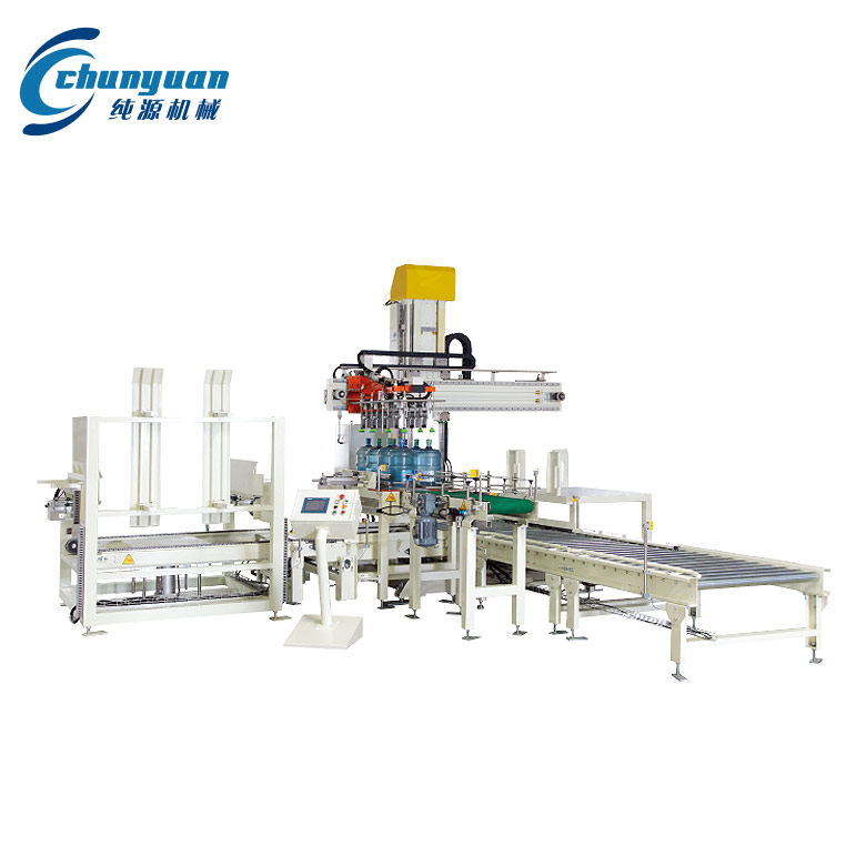 大桶碼垛機(jī)是將已灌裝好的5加侖桶按一定排列碼放在托盤(木質(zhì)、塑膠)上,進(jìn)行自動堆碼,可堆碼多層,然后自動輸至實(shí)托工位,便于叉車運(yùn)至倉庫儲存。本設(shè)備采用PLC+觸摸屏控制,實(shí)現(xiàn)智能化操作管理,實(shí)現(xiàn)人機(jī)對話,可顯示生產(chǎn)速度,故障原因及位置,自動化程度高。簡便、易掌握,可大大地減少勞動力和降低勞動強(qiáng)度。