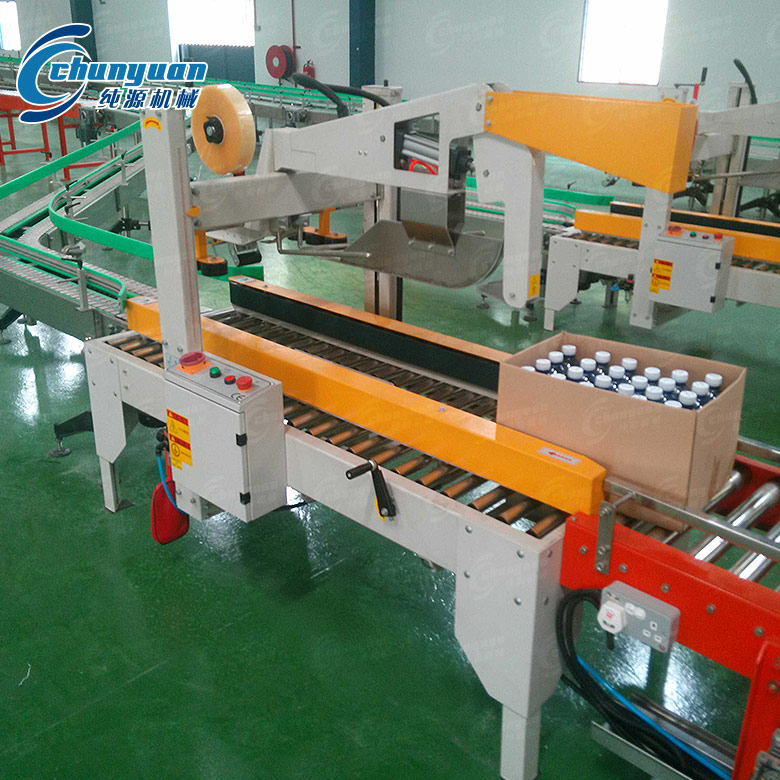 全自動折蓋封箱機(jī)紙箱上蓋自動折入,平穩(wěn)順暢,封箱作業(yè)一氣呵成,美觀省力,可配合自動化包裝機(jī)械系列使用。